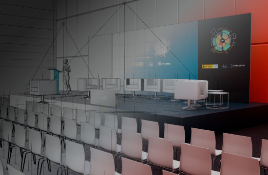 Producción técnica y logística: instalación de tarimas, pantallas, acreditaciones, guardarropía y montaje de 30 stands, 48 posters y 15 demostradores.